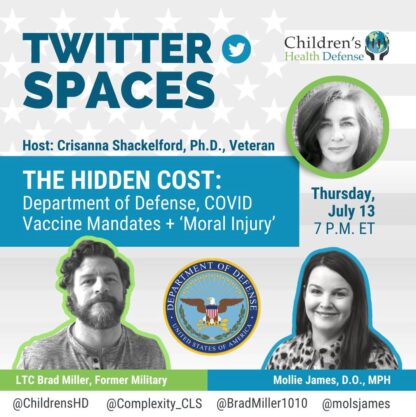 Dr. Crisanna Shackelford hosts former Army Lieutenant Colonel Brad Miller, Dr. Mollie James, D.O., MPH, and several others to discuss the impact that Moral Injuries have had on our current force and veterans who have recently the separated from the service due to the COVID-19 Vaccine mandate. Listen to the full discussion on X (formerly Twitter) by clicking here.